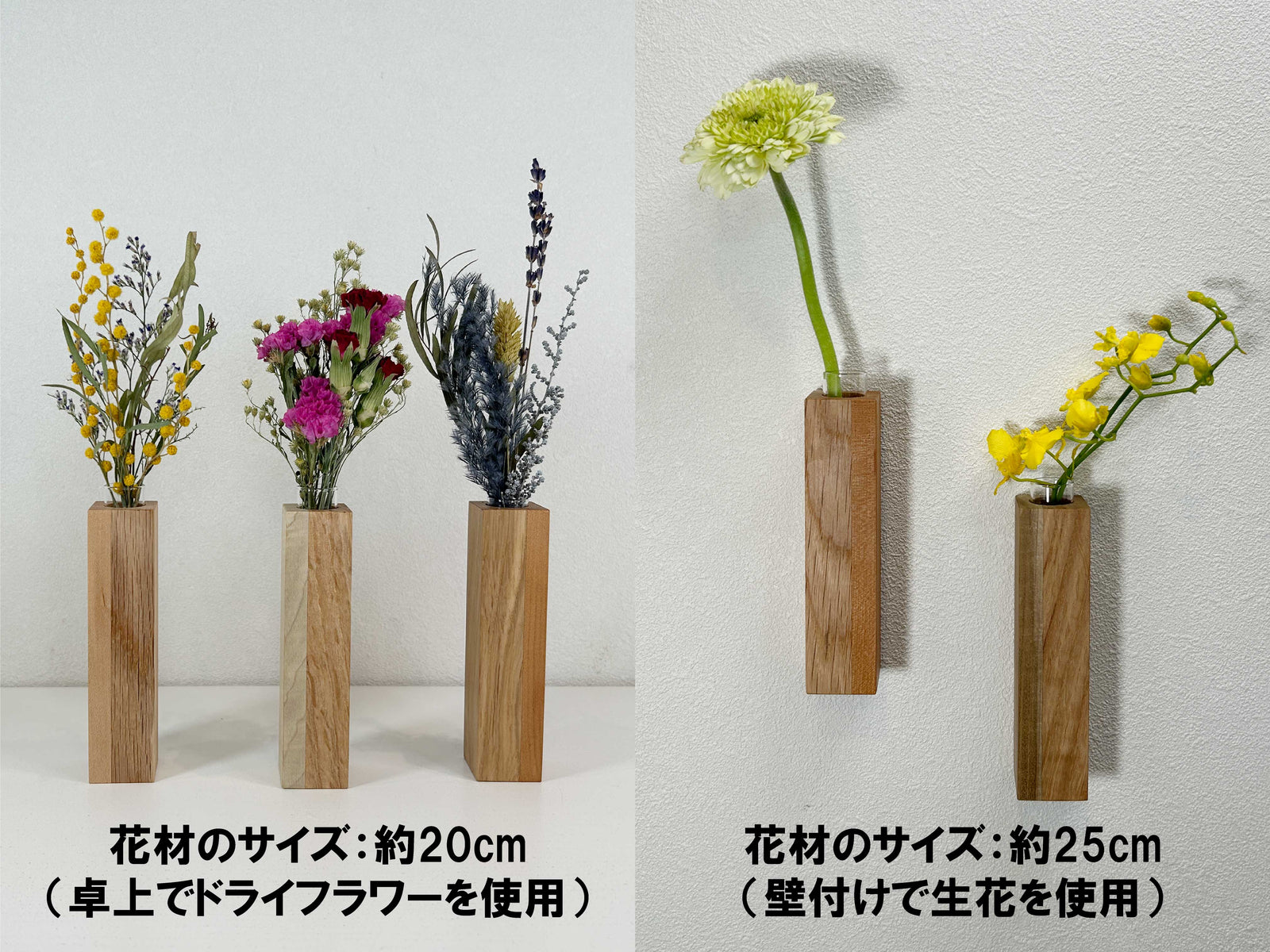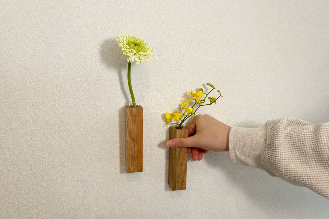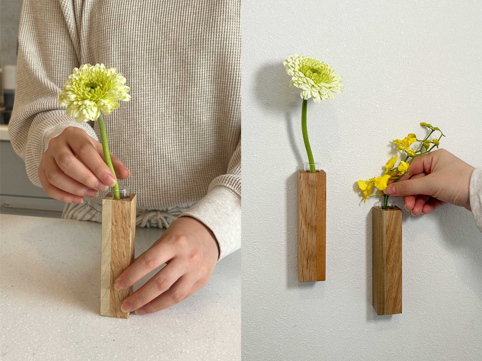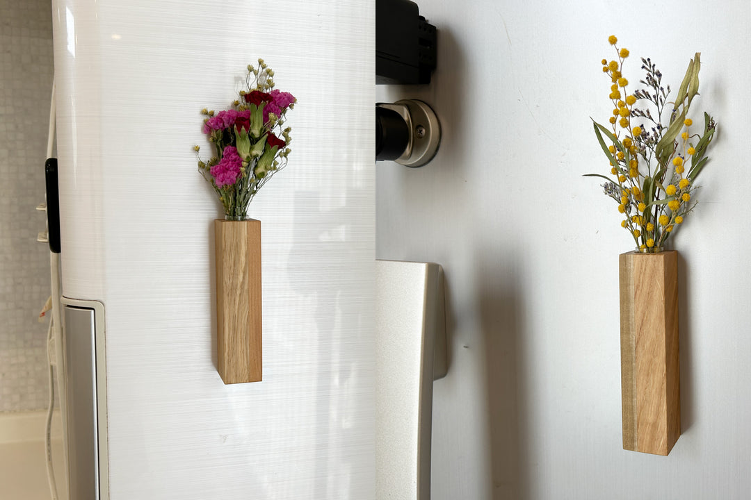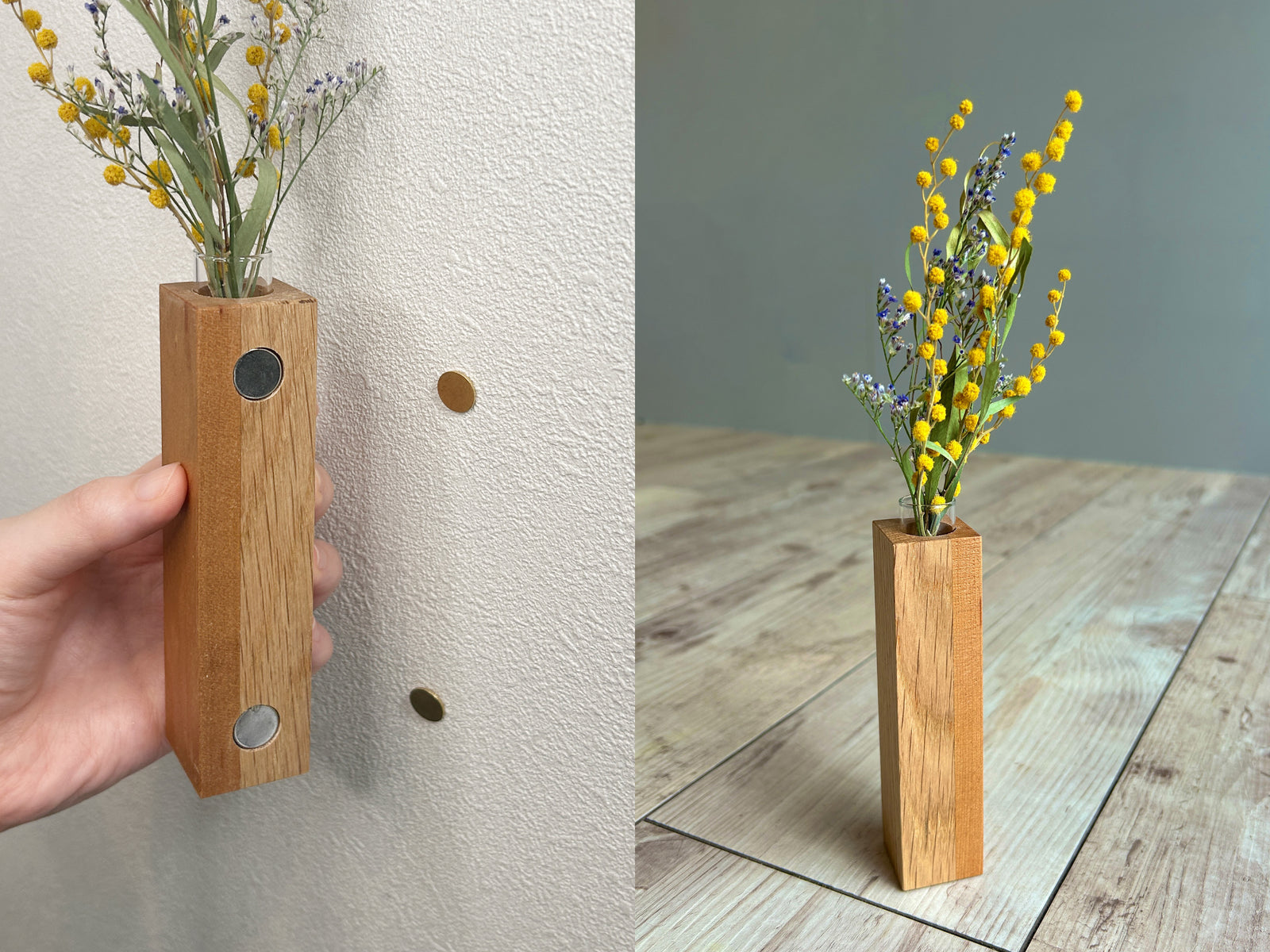 飛騨産の天然木を使用したマグネットタイプの一輪挿し